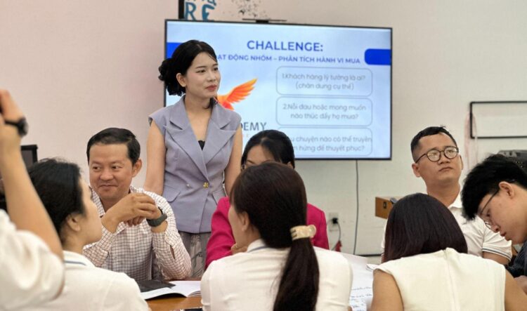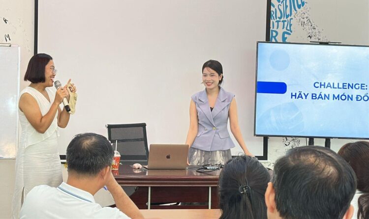 Không dừng lại ở lý thuyết, các hoạt động nhóm như “Bán tinh dầu cá nhân hóa”, “Nệm chữa đau lưng” hay “Trà Olong”, “Ghế sofa” giúp học viên thực hành ngay trong lớp. Chính qua những thử thách này, người học mới cảm nhận được sự phức tạp – nhưng cũng đầy thú vị – của công việc bán hàng. Diễn giả Võ Thị Mỹ Duyên cũng không ngần ngại chia sẻ câu chuyện thật từ chính hành trình kinh doanh của mình, mang đến sự kết nối chân thực và truyền động lực mạnh mẽ.