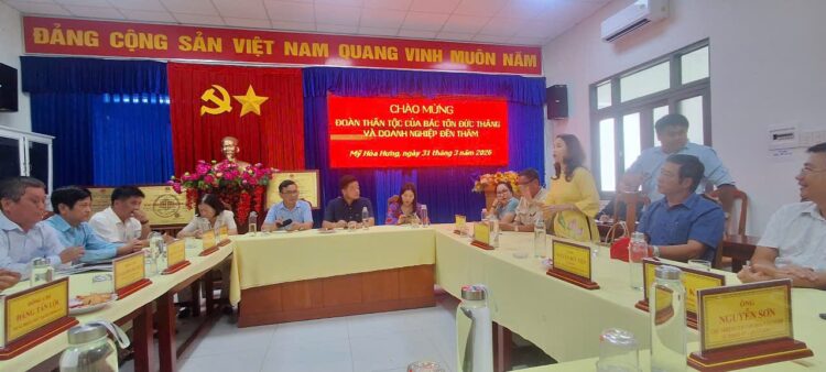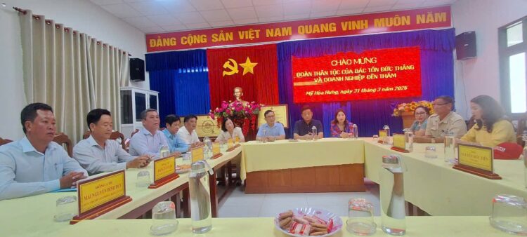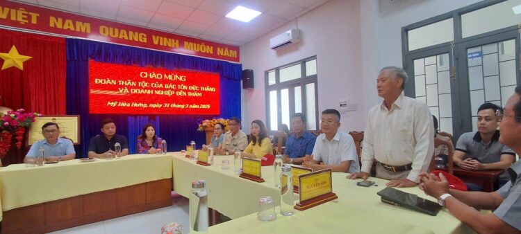 (TVPLO) – Trong khuôn khổ chuyến công tác về nguồn nhân kỷ niệm 46 năm Ngày mất Chủ tịch Tôn Đức Thắng. Chiều ngày 31/3, Đoàn Doanh nhân Sài Gòn và Hội đồng họ Mai tại TP.HCM đã có buổi thăm, tìm hiểu về nét đẹp văn hoá dân tộc từ “Đám giỗ – nét đẹp văn hoá Nam Bộ”, qua đó phát huy nội lực và lan tỏa tinh thần nghĩa tình quê hương cù lao Mỹ Hoà Hưng quê hương của Chủ tịch Tôn Đức Thắng.