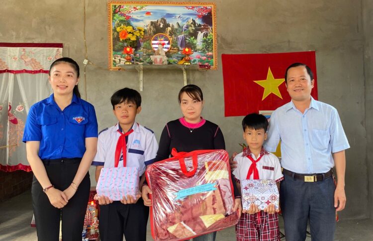 Đại diện địa phương trao quà cho gia đình