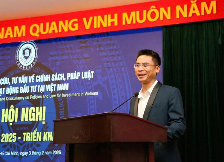(TVPLO) – Vừa qua, tại Nhà khách Quốc hội phía Nam, Hiệp hội Nghiên cứu Tư vấn Chính sách, Pháp luật cho hoạt động đầu tư tại Việt Nam (AVRCIPL) đã tổ chức Hội nghị tổng kết công tác Hiệp hội năm 2025 và triển khai nhiệm vụ năm 2026 vào ngày 03/02/2026. Chủ trì Hội nghị có ông Trần Sơn Vũ – Chủ tịch Hiệp hội AVRCIPL; ông Trần Tuấn Hải – Phó Chủ tịch Thường trực Hiệp hội AVRCIPL; ông Hồ Minh Sơn – Phó Chủ tịch – Tổng Thư ký Hiệp hội AVRCIPL; ông Phan Khôi Tường – Phó Chủ tịch Hiệp hội AVRCIPL; ông Trần Thành Mai – Phó Chủ tịch Hiệp hội AVRCIPL…