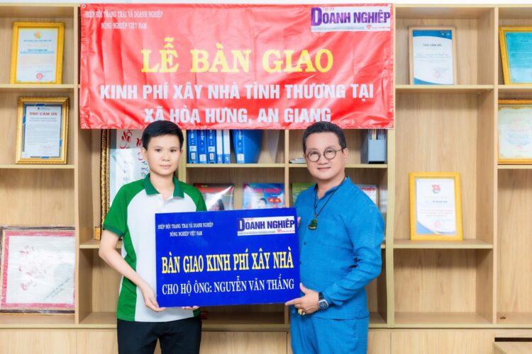 Cụ thể, chiều ngày 7/8/2025, tại số 414 Huỳnh Tấn Phát, phường Tân Thuận, Tp. Hồ Chí Minh. Đoàn công tác của Hiệp hội VFAEA; Viện IMRIC; Viện IRLIE và Tạp chí Doanh nghiệp và Trang trại Việt Nam do Ts. Hồ Minh Sơn chủ trì; ông Hồ Phú Quốc Cương – Ban biên tập Tạp chí Doanh nghiệp và Trang trại Việt Nam; Nghệ nhân kim hoàn Quốc gia – Hồ Thị Thanh Hương – Tổng Giám đốc Công ty CP Du lịch Đầu tư BĐS Đồng Đội Phú Quốc, và cán bộ, phóng viên Tạp chí Doanh nghiệp và Trang trại Việt Nam đã tổ chức trao tặng kinh phí xây dựng nhà tình thương trong Chương trình “Báo chí và Doanh nhan” năm 2025 cho hộ ông Nguyễn Văn Thắng tỉnh An Giang.