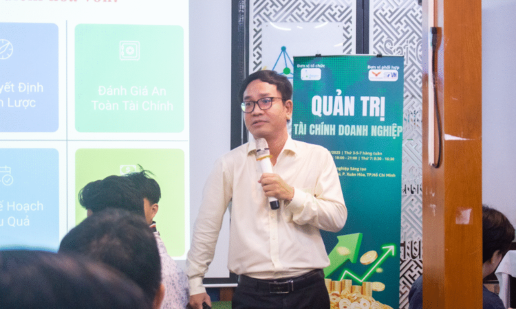 Trong chuyên đề Quản trị Tài chính Doanh nghiệp, Thạc sĩ Nguyễn Anh Toàn – chuyên gia kinh tế với hơn 15 năm kinh nghiệm tại các quỹ đầu tư và ngân hàng lớn như Maybank Investment bank, VinaCapital, Citibank, ANZ – đã giúp các học viên xây dựng nền tảng vững chắc về cách phân loại và quản trị chi phí, một trong những yếu tố sống còn của mọi doanh nghiệp. Từ góc nhìn chiến lược đến vận hành thực tiễn, các nội dung như cấu trúc giá thành, điểm hòa vốn và định giá sản phẩm,… đã được làm sáng rõ thông qua tình huống sát thực tế, bảng tính mẫu và trao đổi nhóm. Đặc biệt, những so sánh giữa các mô hình chi phí khác nhau, cùng tác động của chúng đến biên lợi nhuận và khả năng chịu đựng rủi ro, đã giúp các start-up hiểu rõ hơn cách thiết kế chiến lược chi phí phù hợp với mục tiêu phát triển của mình.