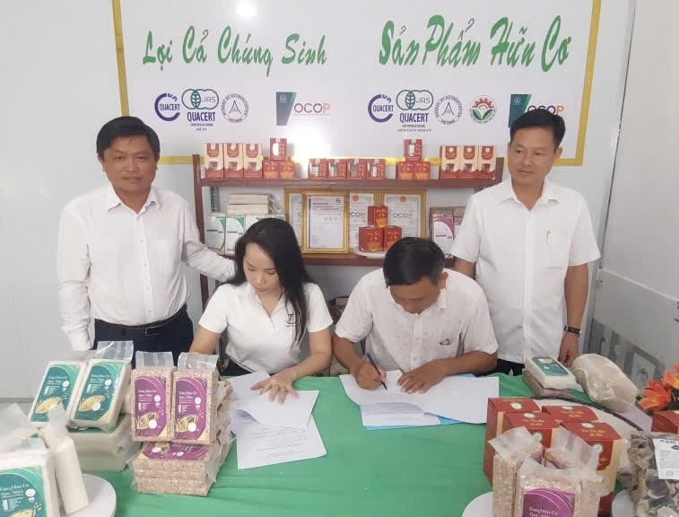 Cụ thể, mới đây – HTX Thanh Nhàn gạo ST25 Hữu Cơ; HTX Tân Lập Tiến nấm hữu cơ (toạ lạc tại xã Nhơn Hòa Lập) đã diễn ra lễ ký kết họp tác đại lý độc quyền phân phối gạo hữu cơ và nấm với Công Ty TNHH Lương Thực Thực Phẩm Thịnh Phú…Tham dự có các ông Lê Văn Nhãn – Bí thư Đảng Ủy, Chủ tịch Hội đồng Nhân dân xã; ông Võ Minh Dương – Phó bí thư thường trực Đảng ủy;ông Ngô Phước Xuyên – Ủy viên Ban thường vụ, Phó chủ tịch Hội đồng nhân dân xã; ông Đinh Văn Định – Phó chủ tịch UBND xã Nhơn Hòa Lập…